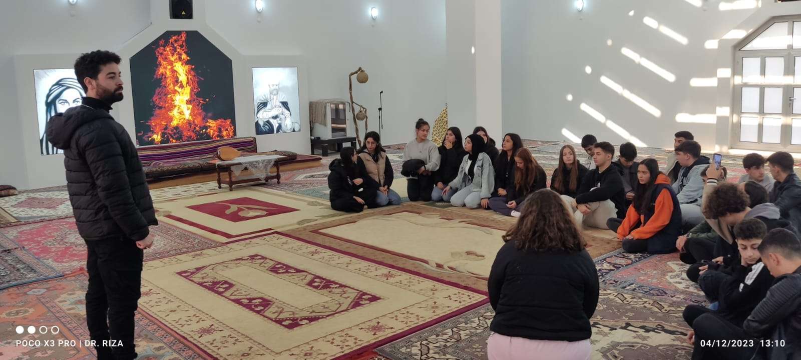 Efeler Anadolu Lisesi öğretmeni Enise ARIKAN Din Kültürü ve Ahlak Bilgisi dersinin “Alevi ve Bektaşilik” konusunu Hacı Bektaş Veli Anadolu Kültür Vakfı Aydın Şubesi yönetimi eşliğinde Çeştepe Şeyh Bedreddin Cem Evinde işledi.